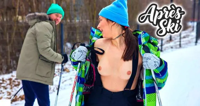 In “Apres Ski flashing with Jane White” our sweethearts wastes no time and shows Aleks her small perfect titties with her hard nipples piercing from the cold weather. Aleks is pretty shocked and pleasently impressed so he starts playing with her boobs and kisses them to keep them warm ofc. After they go inside, the fun and melting finally begins! Jane drops on her knees and wraps her beautiful lips around his cock making it rock hard, ready for some well-deserved pounding. What a great day for fucking.. I mean skiing!