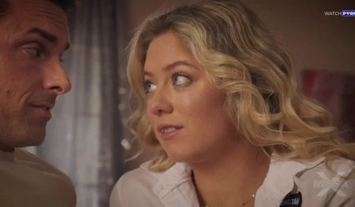 Putting his hand on her knee, Ryan asks: “Do you trust me? How does that feel?”. “Intense. My body feels like it’s on fire”, she says, with her eyes closed. “Can I touch you more?”, he asks. She nods Yes. He rubs her thigh, moving his hand closer to her pussy. “You do have to tell me what you want, ’cause otherwise I’m just gonna stop”, he insists. She takes his hand and places it atop her pussy, and Ryan continues to fondle her. River’s breathing becomes heavy after he pushes her panties aside and starts fingering her pussy directly. Watch the taboo scene unfold…
